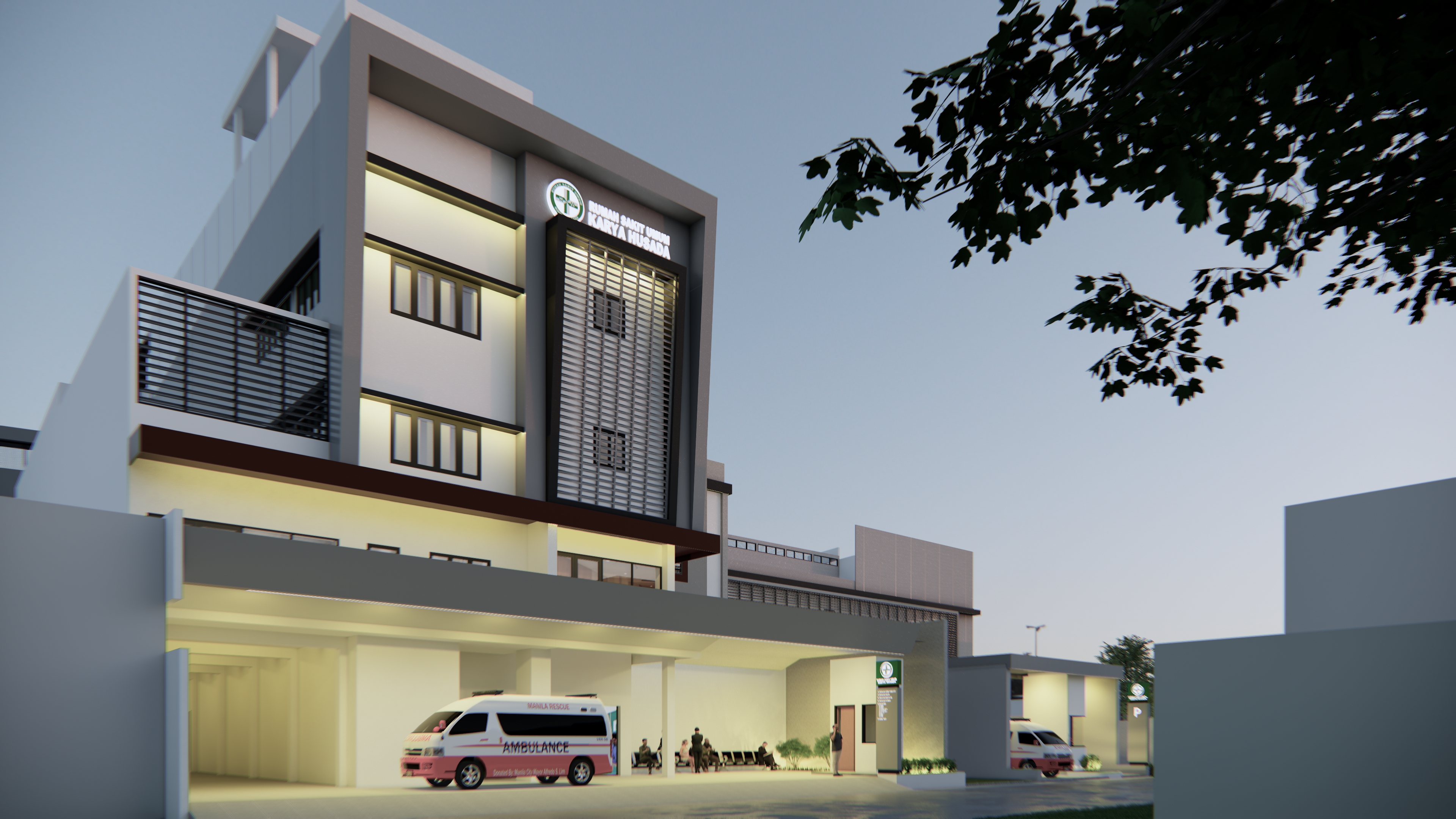 Hospital development pays attention to connectivity with existing buildings, especially in terms of building function. The visual relationship between buildings is also applied to the design of the building facade which adopts the shape of a boat as a regional identity.