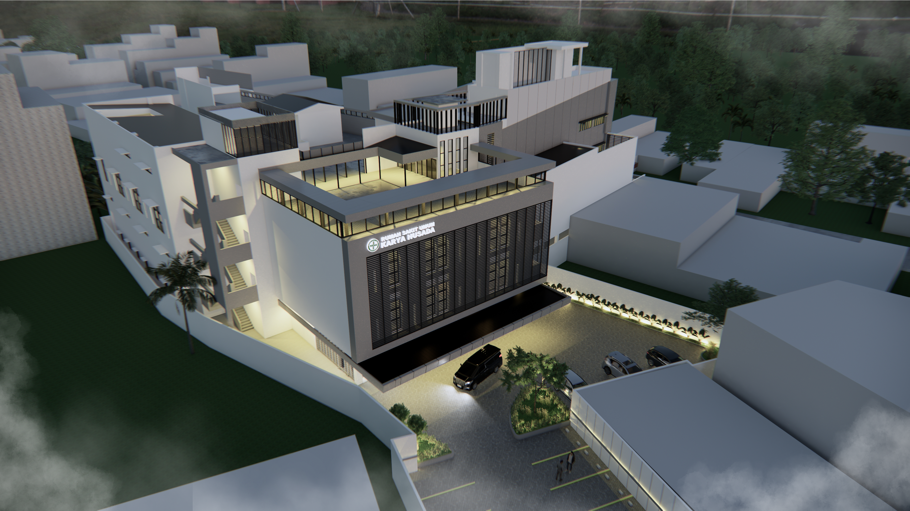 This hospital carries the Techno Nature concept, which integrates advanced technology with natural elements to create a modern, healthy, and sustainable hospital environment. This concept aims to provide a calming atmosphere and support the patient's healing process, while utilizing the latest technological innovations in medical services and hospital management.